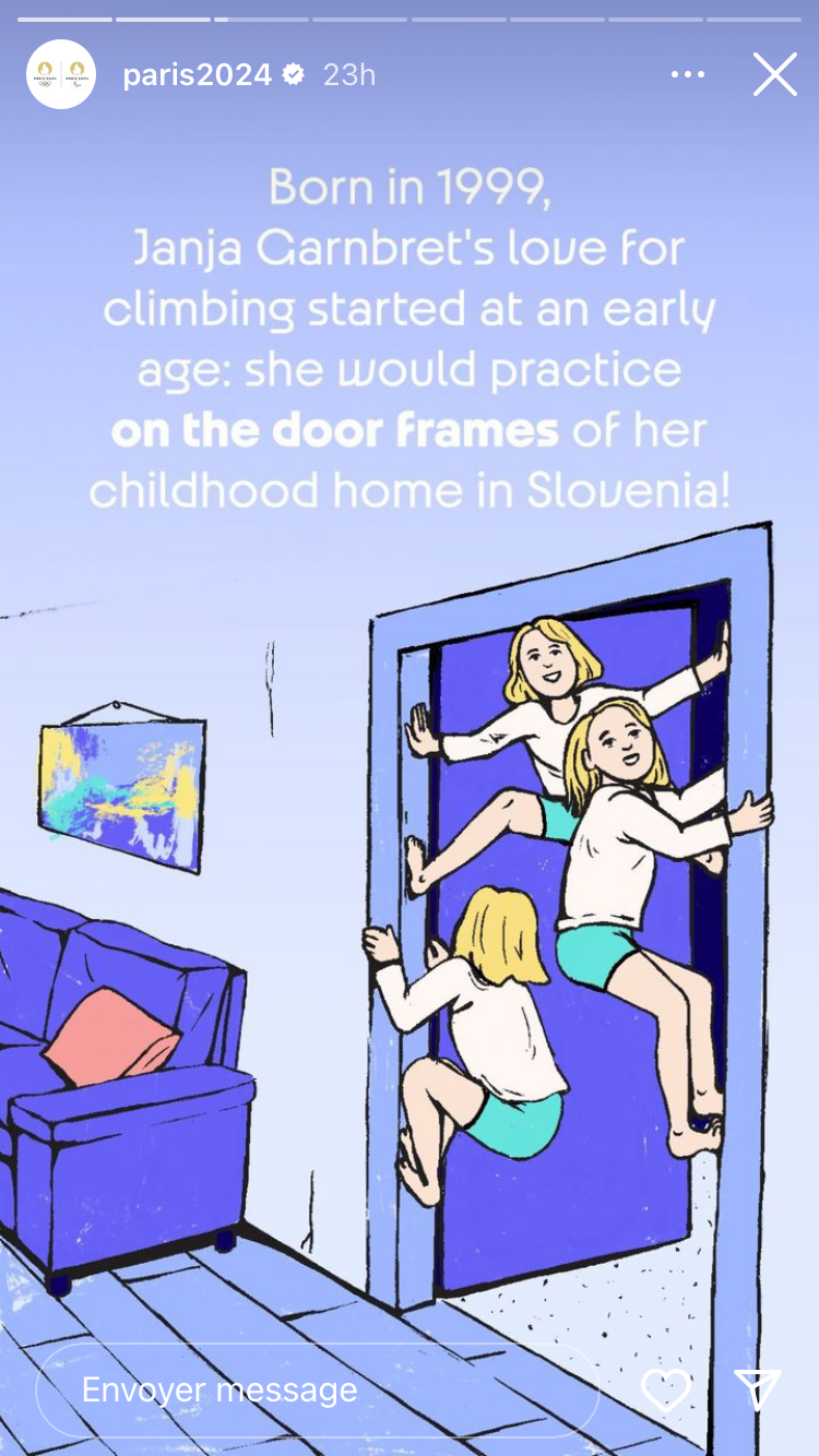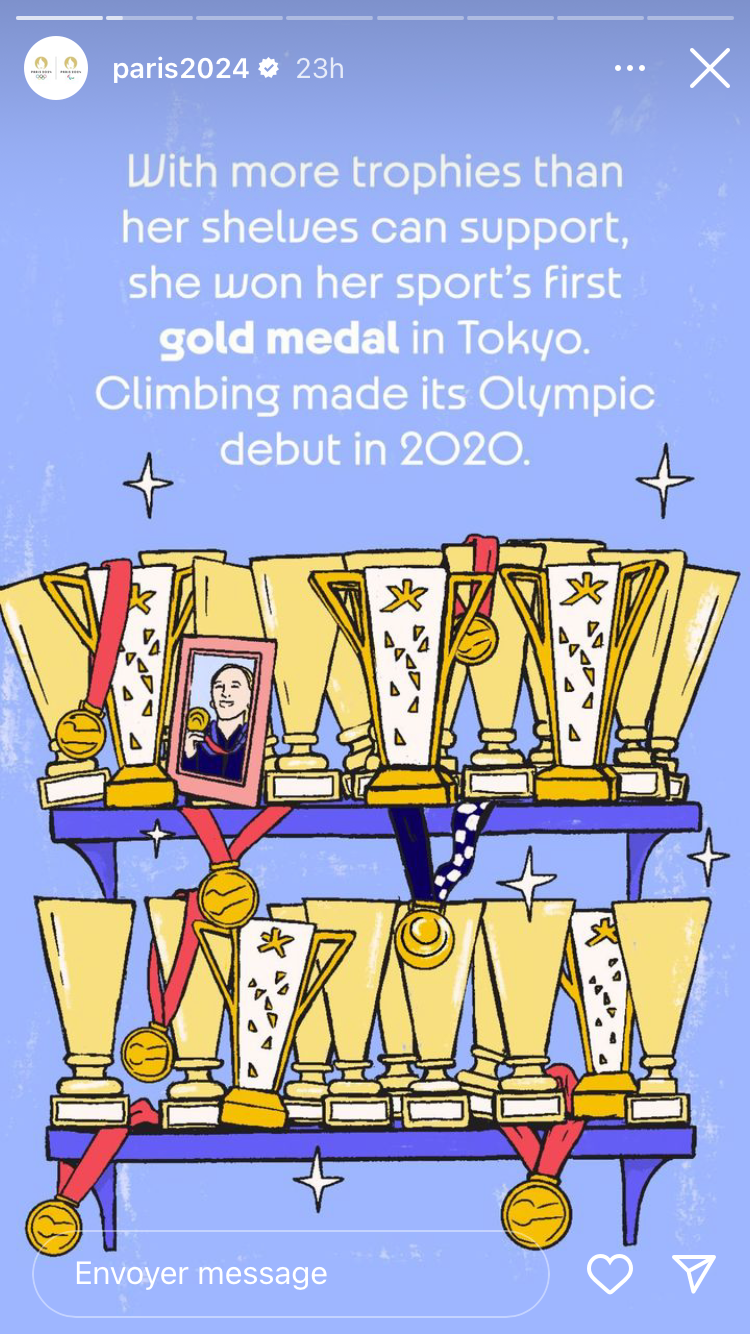 Illustrations pour le compte instagram de Paris 2024. Portraits de sportif.ves. Réalisé avec l’agence Upian.